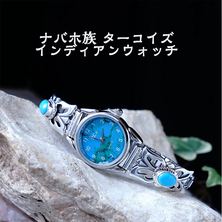 素材 インディアンジュエリー(ネイティブアメリカによるハンドメイドジュエリー)シルバー925 ターコイズ インディアンウォッチ ◆ナバホ族 ターコイズ インディアンウォッチ サイズ◆ウォッチバンドの内径:約15.5〜18センチ(文字盤含む)商品詳細〜ナバホ族 シルバー925 ターコイズのインディアンウォッチです。